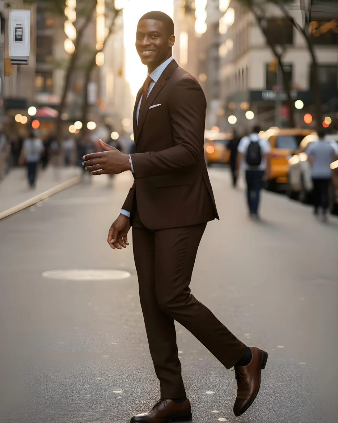 A refined chocolate brown suit tailored for modern gentlemen.