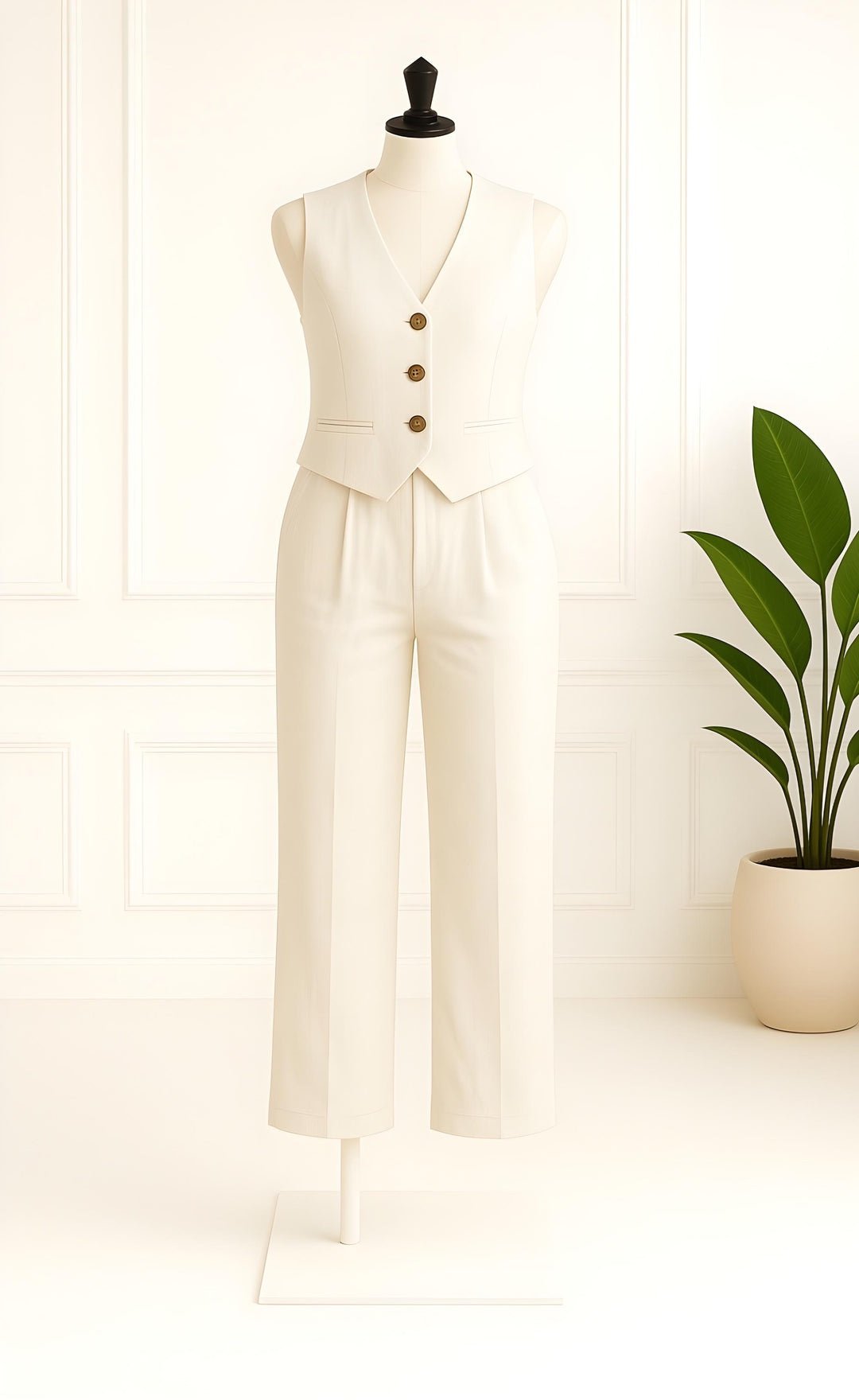 NATURAL BEIGE LINEN VEST AND PANT SET FOR WOMEN – LIGHTWEIGHT SUMMER CO-ORD OUTFIT